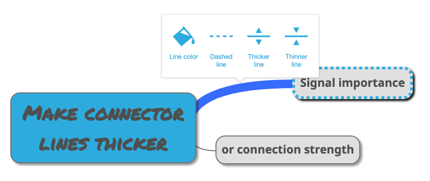 You can now change connector line thickness, in addition to colour, to visually show importance or strength of relationships between nodes in a mind map.